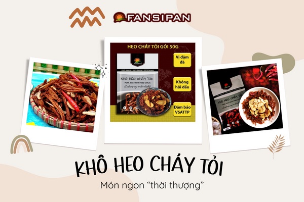 Khô heo cháy tỏi hay thịt lợn khô cháy tỏi là món ăn vặt không còn xa lạ gì với anh/chị/em văn phòng. Mỗi khi nghỉ ngơi rảnh rỗi, ai mà không ước có chút gì đó nhấm nháp & vui cười sau quãng thời gian làm việc mệt mỏi. Vậy nên thịt heo cháy tỏi luôn là món ăn bán chạy nhất tại Thực Phẩm Fansipan.